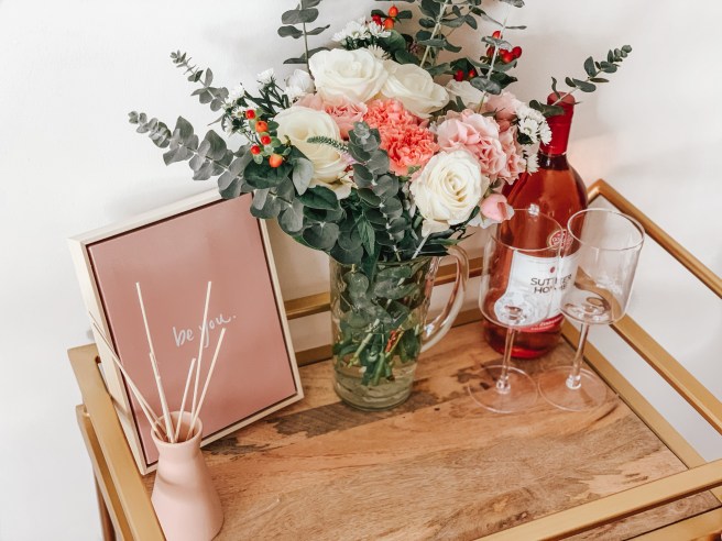 Hi Babes! If you follow me on Instagram, then you already know about my new bar cart that I bought from Target. I have wanted one for months now and finally bought it when it was on sale. I have been somewhat collecting vintage glasses from thrift stores and was looking for a way to kind of display them. So I decided to mix it in with my bar cart decor. With it being spring, I added a lot of pink and fresh flowers from Whole Foods. I love how it adds some color into my neutral room! Plus it makes my room smell amazing! I found most things from Target and Amazon all which were pretty cheap. Everything is linked below!