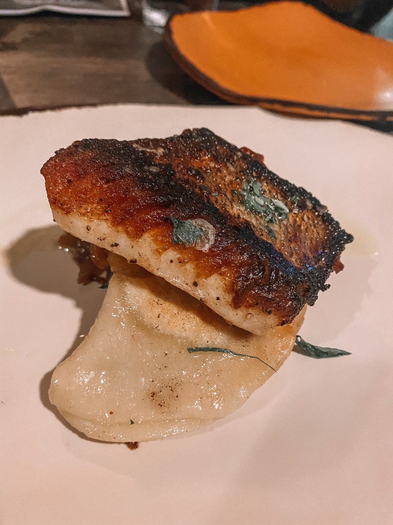 After the scallop, we had Great Lakes Walleye with a homemade pierogi. Again, first time eating Walleye and it was delicious. To rejuvenate our palette, we then had House Spun Sorbet. IT WAS AMAZING.