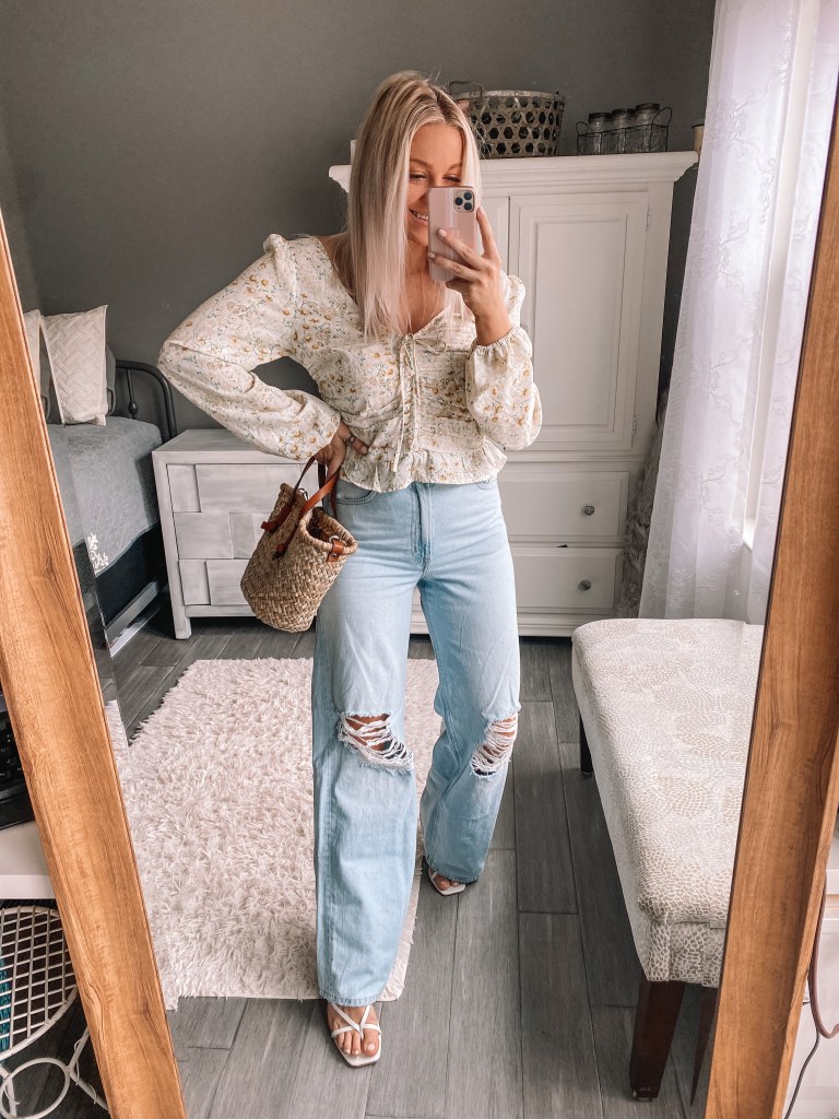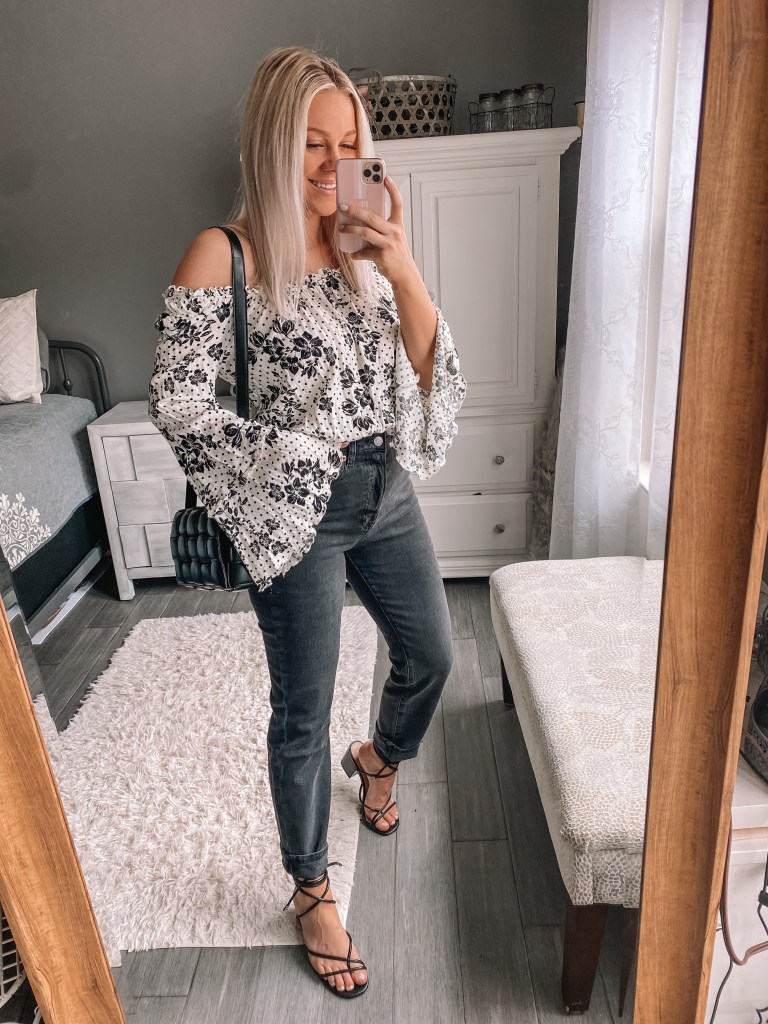 BODYSUIT free people ditsy floral bodysuit | JEANS h&m straight high ankle jeans | SHOES nordstrom (sold out but linked similar) | PURSE etsy (sold out but linked similar)