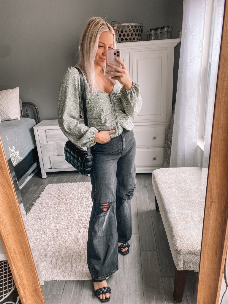 BLOUSE abercrombie & fitch (linked something similar) | JEANS h&m mom high ankle jeans | SHOES target quilted slides | PURSE etsy (sold out but linked similar)