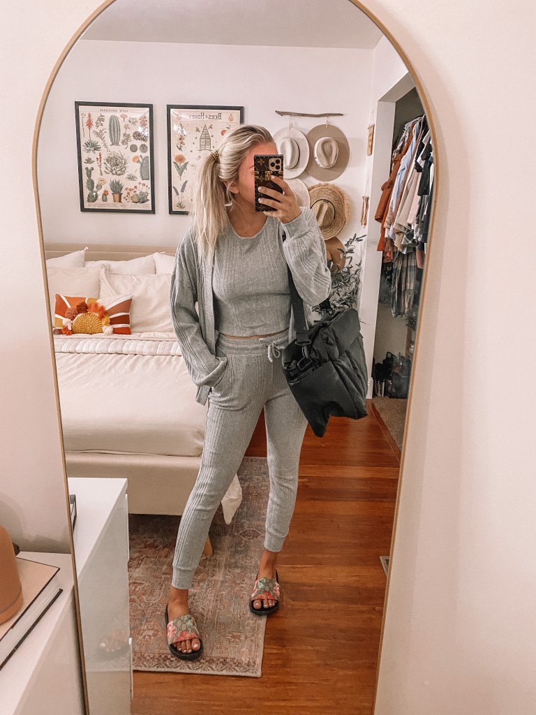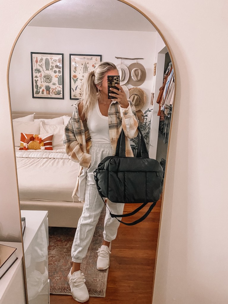 Hi Y’all. Coming at ya today with one of my favorite types of blog posts to write, airport outfit ideas. I decided to make this because I am traveling to Colorado and Florida next month and while I was Pinteresting trying to find some inspo….I couldn’t find anything that caught my eye. That being said, I went through my closet and came up with these looks. When traveling, I don’t dress to impress, I dress for comfort so that is why all of these are more of a laid back style. I also only wear shoes that are comfortable for a lot of walking because you never know if you will have to run to your flight (yes, I am saying this because I learned the hard way). As for my two bags, I recently bought this Calpak duffel and so far, I have been LOVING it. It is so light and spacious plus the perfect size for a personal carry on item. Couldn’t recommend it more! My Dior book tote is my second favorite but I prefer to travel with a bag that doesn’t cost an arm and a leg since you typically leave it in your hotel room. It also doesn’t have a shoulder strap so I really only use it for road trips, nonetheless, I still love it dearly!