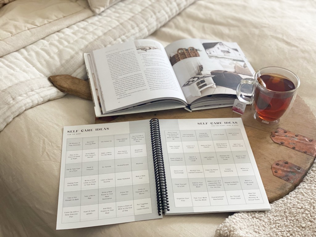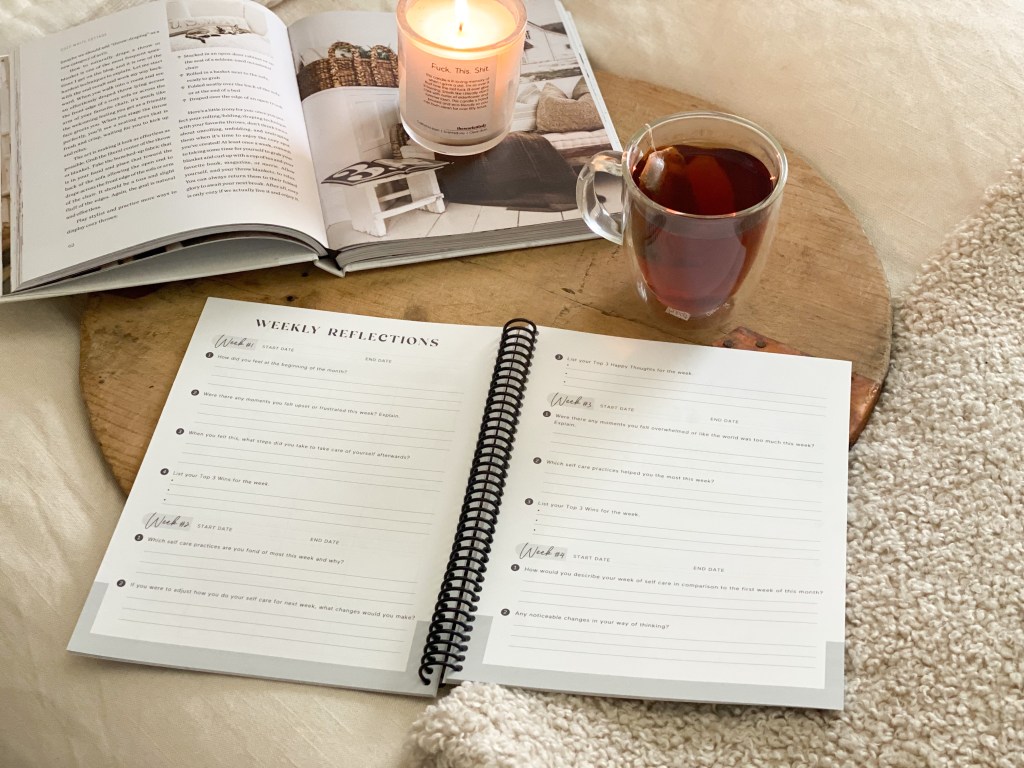 When you first open the self care planner, I love that they have a few pages of self care ideas. If you are ever struggling to do something for yourself, check out this section, it has ideas from reconnecting with an old friend to leaving quarters at the laundromat. They also have a section where you can right your own self care ideas which I love too.